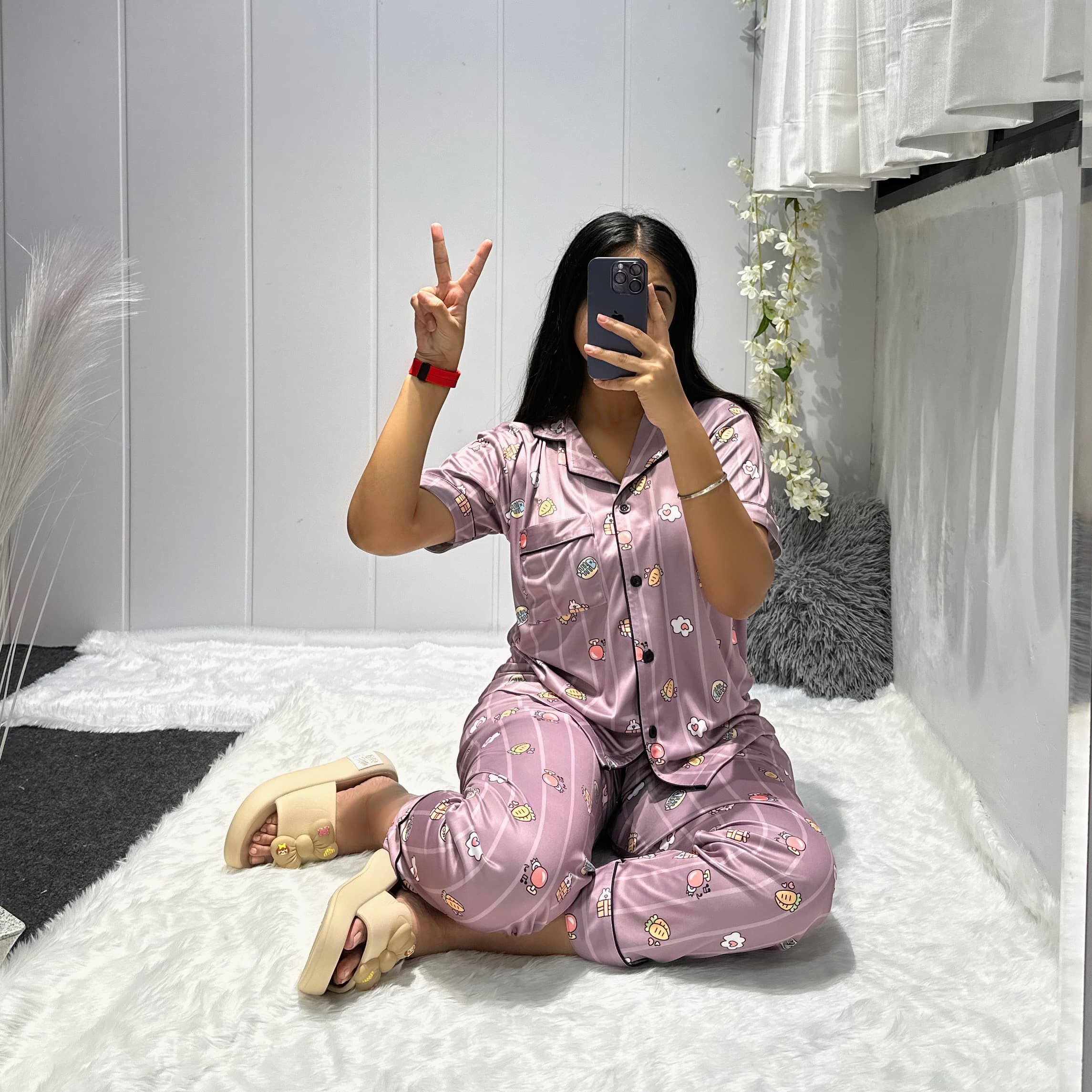 Be the first to review “Printed piping night suit combo of shirt, pajama & shorts”